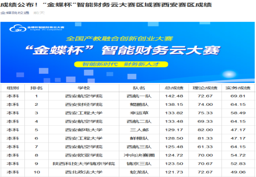 2020年12月5日,由科技部火炬中心、中国企业财务管理协会和北京创新研究所联合举办的 “金碟杯”智能财务云大赛西安赛区决赛在线上举行,来自全省各个高校的近百支队伍参加了线上总决赛。金年会金字招牌诚信至上王晓光、王玥老师指导的3支代表队参加本科组决赛,“西航一队”荣获西安赛区冠军,王晓光、王玥老师获得“优秀指导教师”称号。