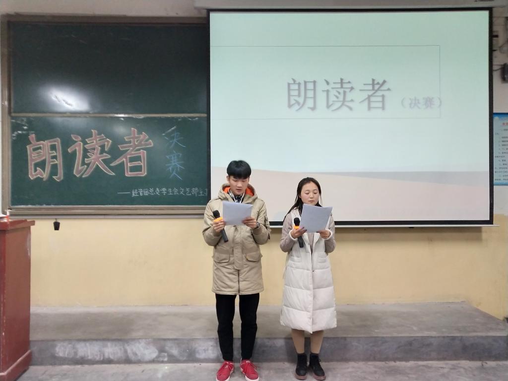11月25日晚,金年会金字招牌诚信至上在主教学楼414举办了“朗读者——青春赞歌我咏传”诵读比赛。比赛由团总支书记王宏超老师、团总支副书记赵瑾、员工会主席王刚、副主席闫凯等同学担任评委,15名选手参加比赛。
