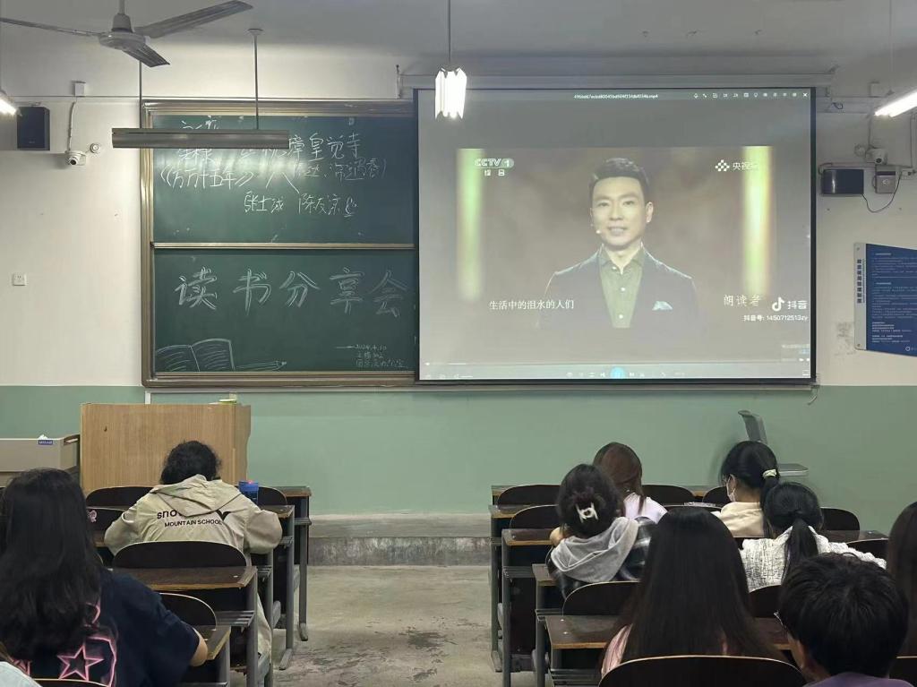 分享环节后,同学们观看《朗读者》精选片段,一场文雅而沁人心肺的朗读更是让大家体会到了读书的魅力。