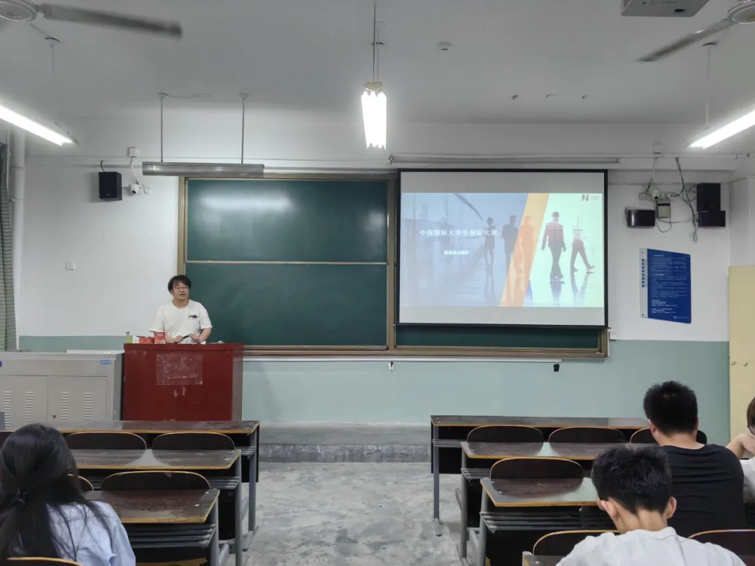 最后,他结合往届获奖作品案例,带领同学们从互联网项目介绍、参赛对象分类、竞赛选题和申报材料等方面为大家进行了系统地讲解,鼓励同学们积极参赛。