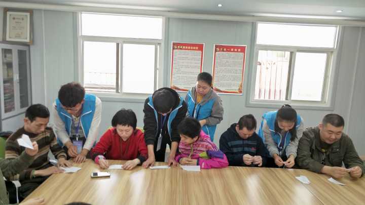 活动现场,志愿者们帮助阳光之家的老师换掉了坏掉的窗纱;和阳光之家的成员们一起做击鼓传花的游戏,演唱歌曲《小燕子》、背诵诗词《弟子规》、表演武术《双节棍》;一起做折纸的的游戏,折纸飞机、纸船、纸鹤和纸质的爱心。活动最后志愿者们和阳光之家的成员们合影留念。