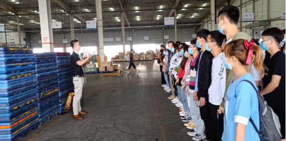 最后,由公司陈慧泽、刘欣萌老师进行了活动总结,重点说明了此次前往物流基地的意义并安排了为期六天的校外实习的具体工作事宜。希望大家在接下来的日子中认真学习,并强调在校外实习期间做好自己的本职工作,服从校外管理人员安排,最后带领全体师生与康经理进行合影留念,至此本次校外参观活动圆满结束。