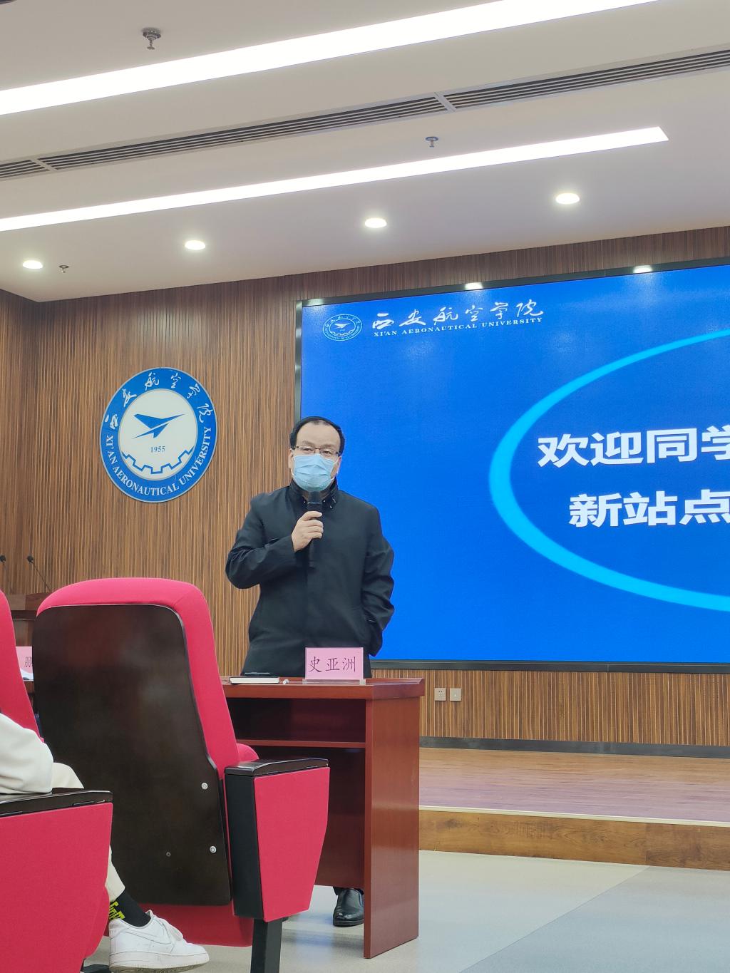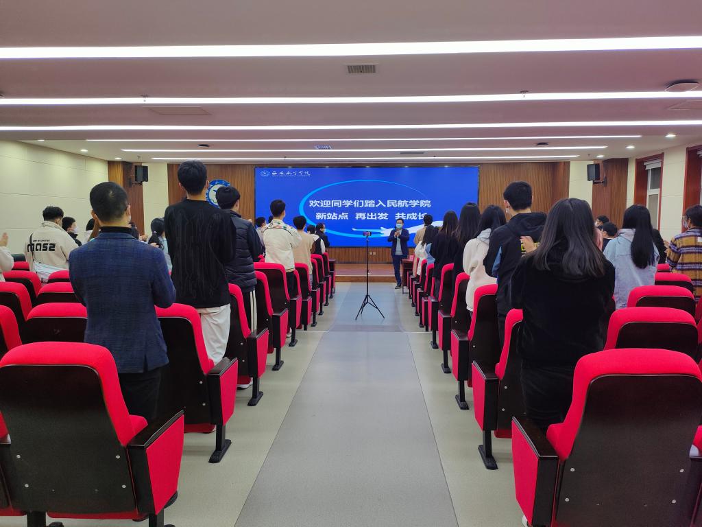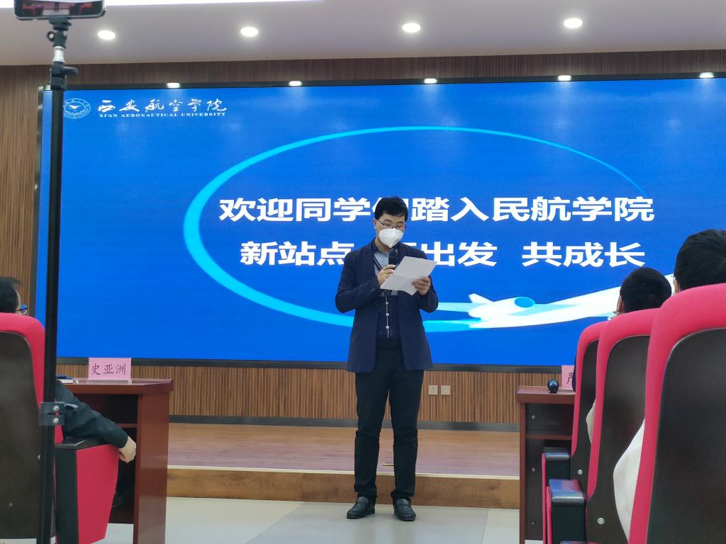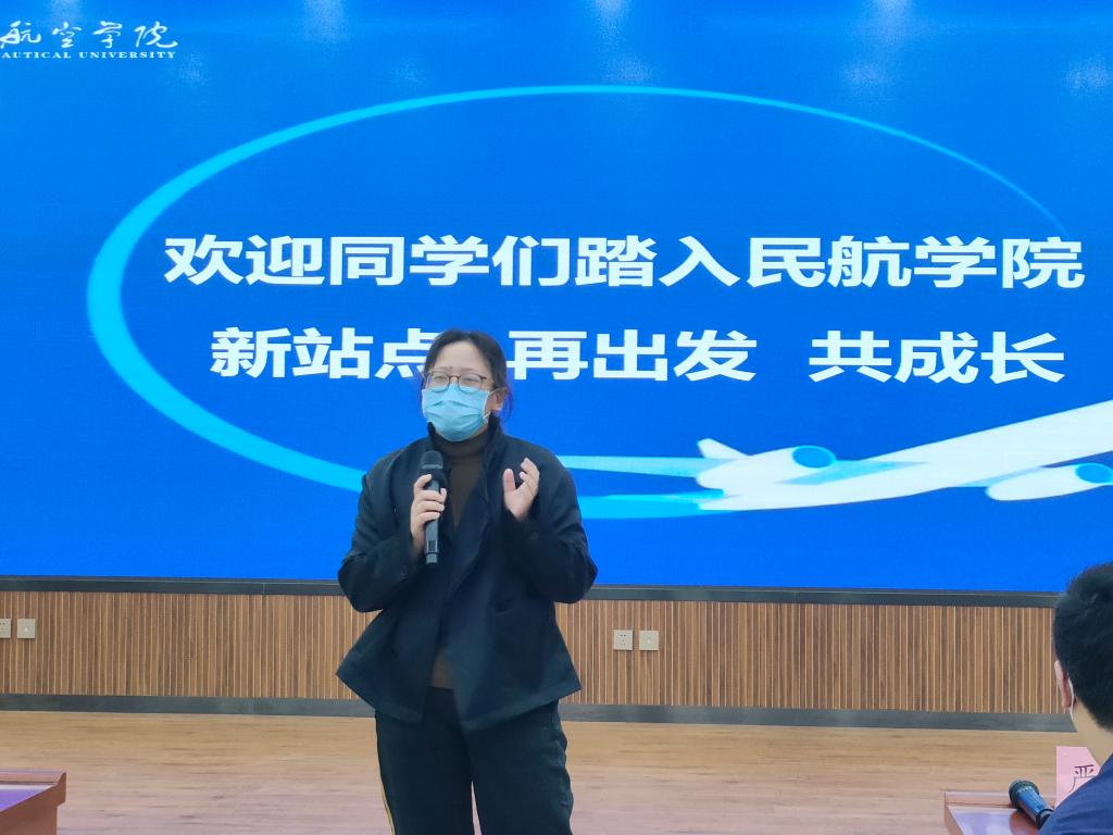民航公司党总支副书记裴鑫向同学们介绍了辅导员老师的分工,希望和同学们能够双向奔赴,一起创造有温度、有角度、有态度的民航公司,和同学们一起构建持续温暖、团结向上、奋进向前的家庭氛围,和同学们相互陪伴,一起成长,在民航公司大集体中遇到更好的自己。