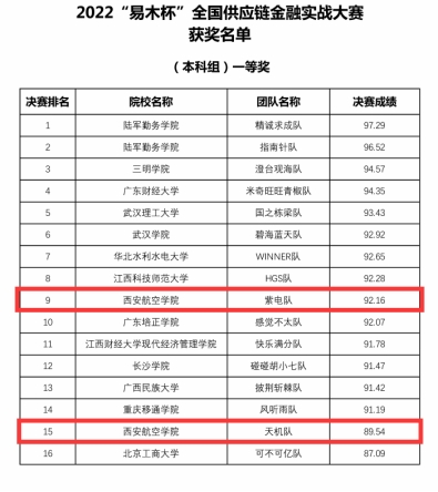 2022年12月25日,由中国物流生产力促进中心主办的2022“易木杯”全国供应链金融实战大赛决赛落下帷幕。本次大赛共吸引全国259组本科队伍报名,公司物流管理专业马梓倬、陆祖耀、聂凤哲、王文旗同学组成的“紫电队”,杨嘉栋、汪江浩、杨宇华、廖芳同学组成的“天机队”,经过两轮初赛及决赛的激烈角逐均荣获本科组全国一等奖。金年会金字招牌诚信至上刘欣萌、王刚分别获得优秀指导教师奖。