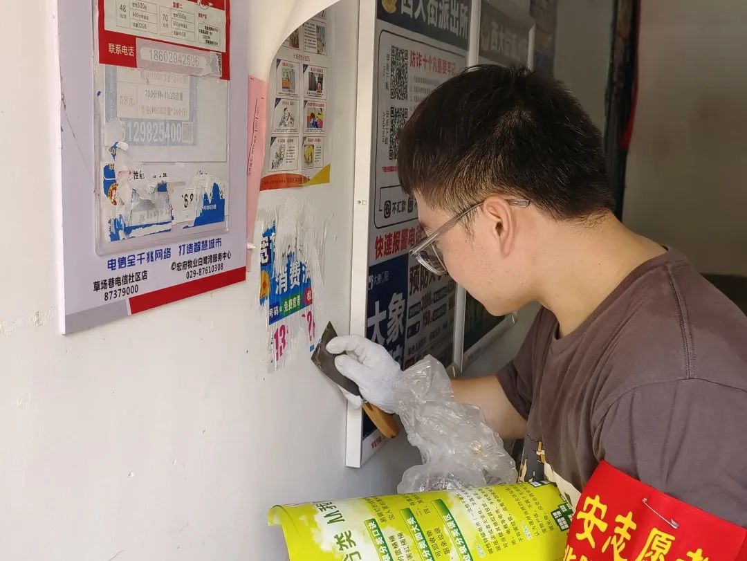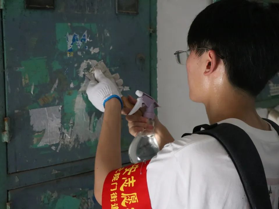为进一步提升社区环境卫生质量和居民生活品质,实践队深入白鹭湾社区清理违规小广告。实践队队员不放过一处垃圾、不遗漏一个角落,对街边绿化带、小区楼道等犄角旮旯里的垃圾和沿街墙面、电线杆、电表箱等公共设施上的违规小广告进行彻底清理,齐力营造整洁优美的社区环境。