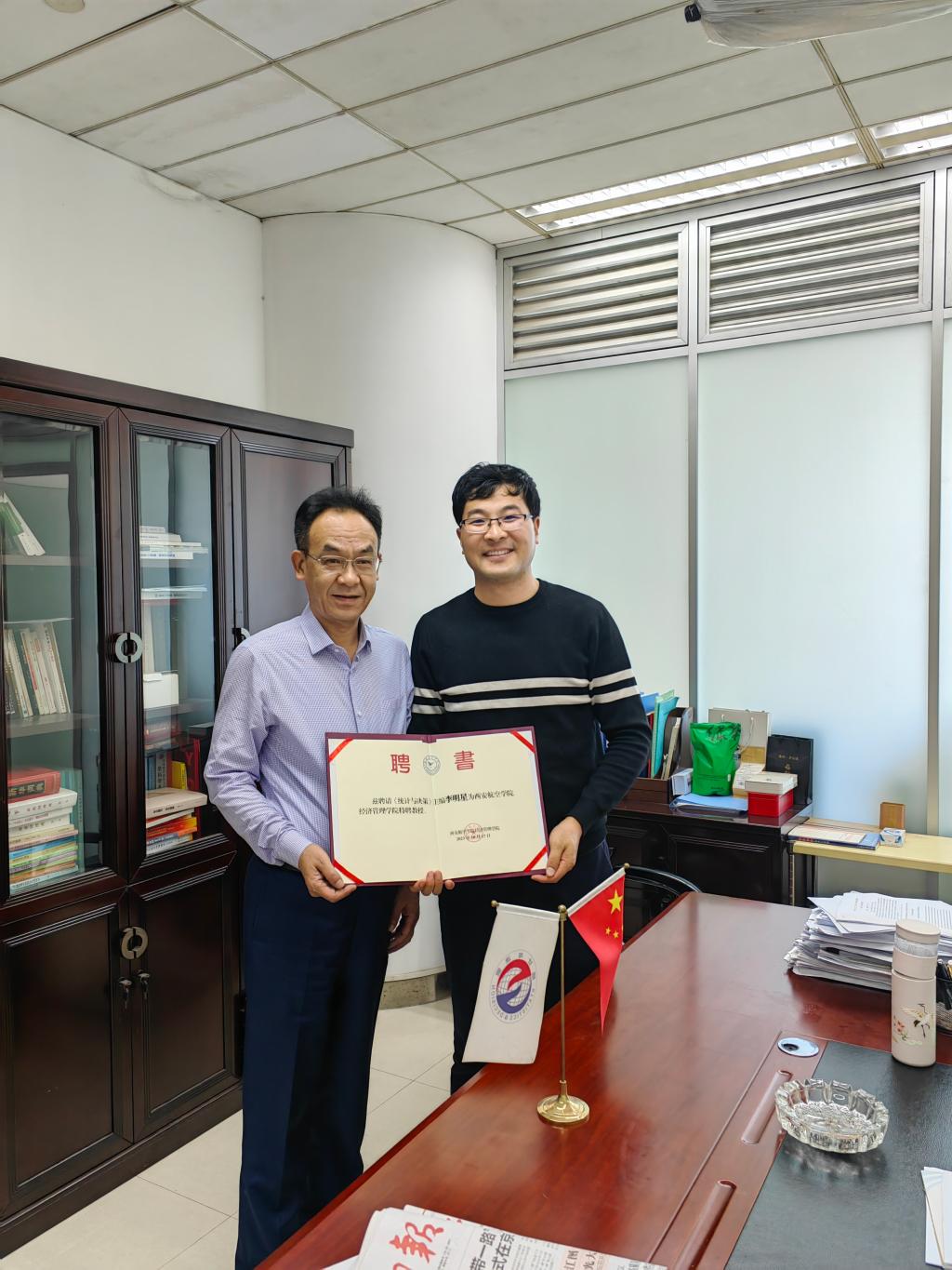 为进一步促进公司科研发展,给广大教师搭建更高层次科研平台,10月18日至19日,公司党总支书记兼副经理张鹏赴湖北武汉调研《统计与决策》杂志社,为正高级统计师李明星主编颁发聘书,并邀请来校调研交流、指导工作。