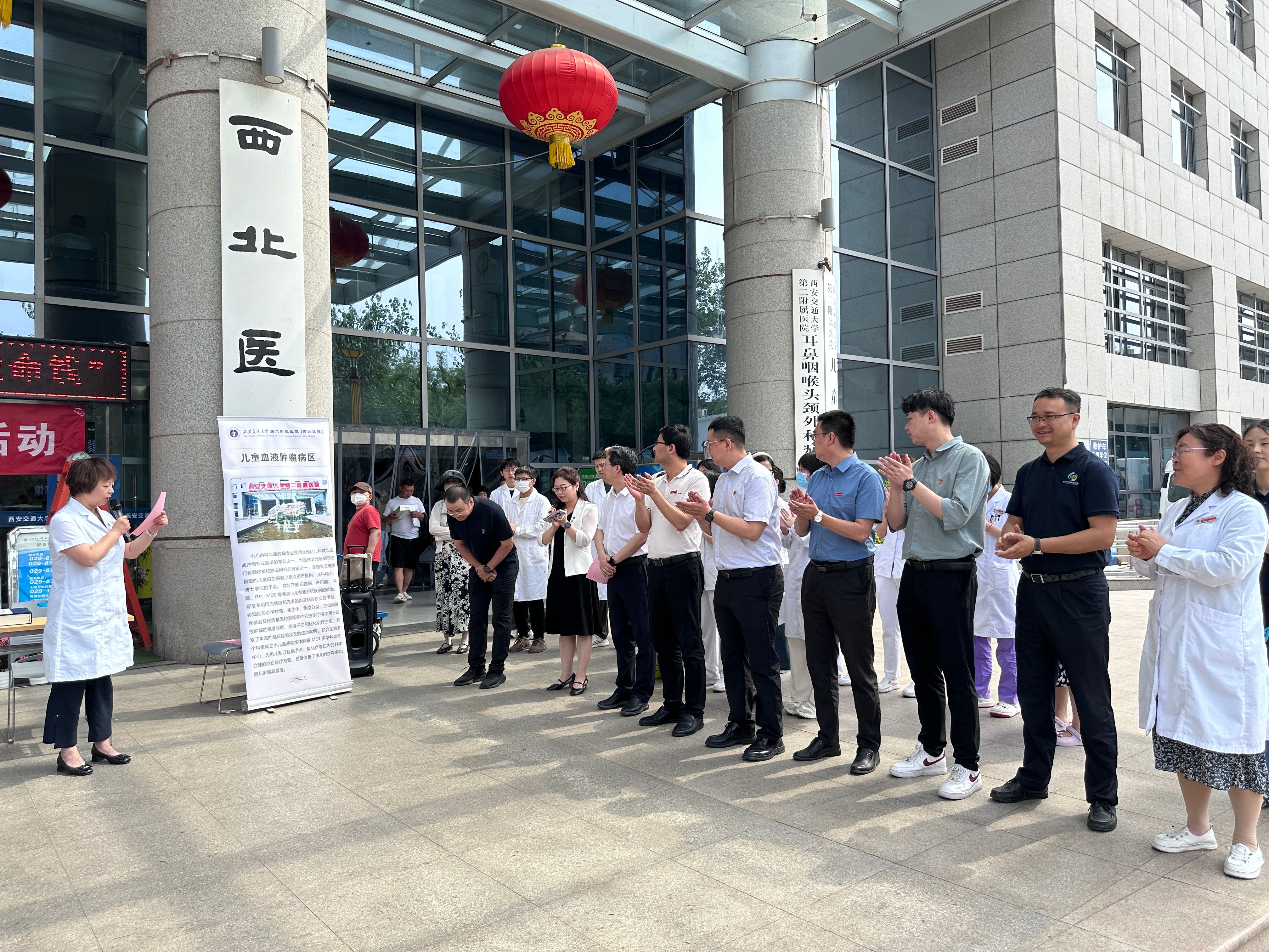 本次活动启动仪式在交大二附院综合门诊大楼广场开展,由交大二附院儿科主任杨琳主持,西安交通大学第二附属医公司党委副书记、纪委书记滕文葆、团委书记董艳、血液科主任赵万红、血液科张鹏宇教授、儿科肖延风教授、团委副书记鲍和,以及北京同心圆基金会西北地区负责人、西安市心羽志愿服务中心项目总监赵孟虎,公司党总支书记张鹏、金年会官方网站入口校团委副书记米嘉琪、金年会金字招牌诚信至上员工管理科杜航宇、金年会金字招牌诚信至上团总支书记李金泽及儿科、血液内科医护人员、医员工、公司员工志愿者等50余人参加活动。