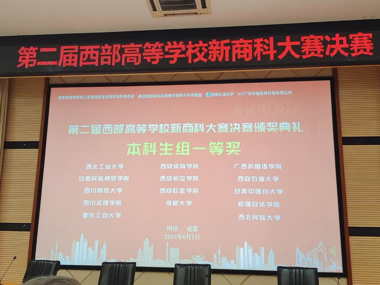2024年6月1日,第二届西部高等公司新商科大赛在西南石油大学举办,金年会金字招牌诚信至上物流管理专业王文旗、杨嘉栋、财务管理专业程涵荻同学,在刘欣萌老师指导下,经过激烈比拼,最终荣获本科组一等奖,刘欣萌获“优秀指导教师”称号。本次大赛由教育部工商管理类专业教学指导委员会指导,西部新商科实践教学创新与共享联盟主办,西南石油大学承办,共有来自西安交通大学、西北工业大学等西部高等院校的60余支队伍报名参赛。