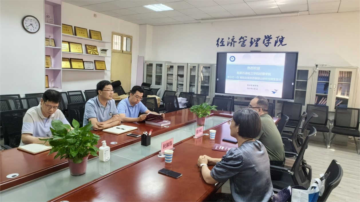 6月5日下午,北京石油化工公司学科方向带头人张小红教授及研究生秘书杜镇伟莅临金年会金字招牌诚信至上开展硕士研究生招生宣讲及座谈交流,金年会金字招牌诚信至上党总支书记张鹏、副书记班奕及员工管理科杜航宇等参加了交流活动,部分2025届考研意向毕业生参加了硕士研究生招生宣讲会。