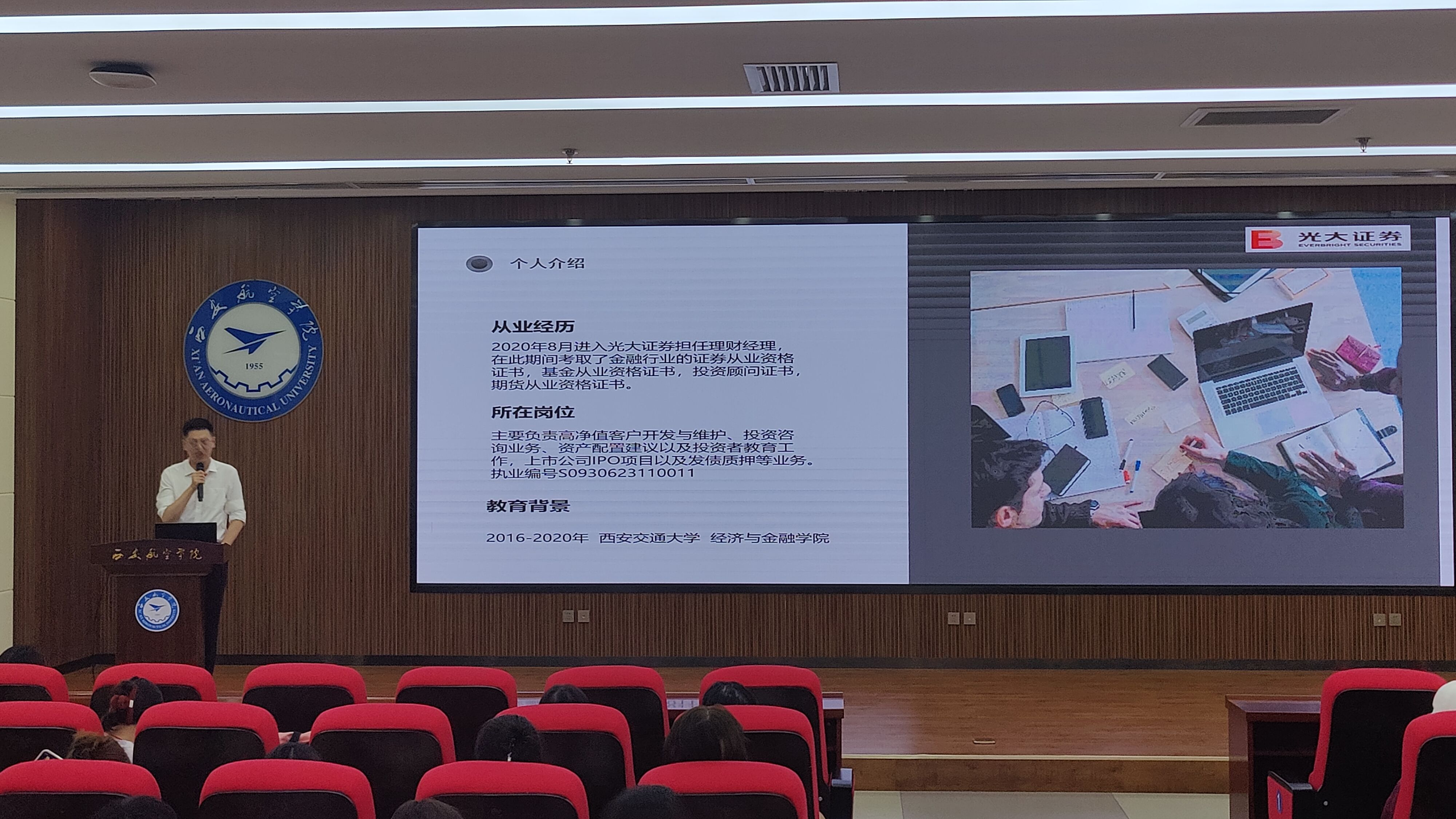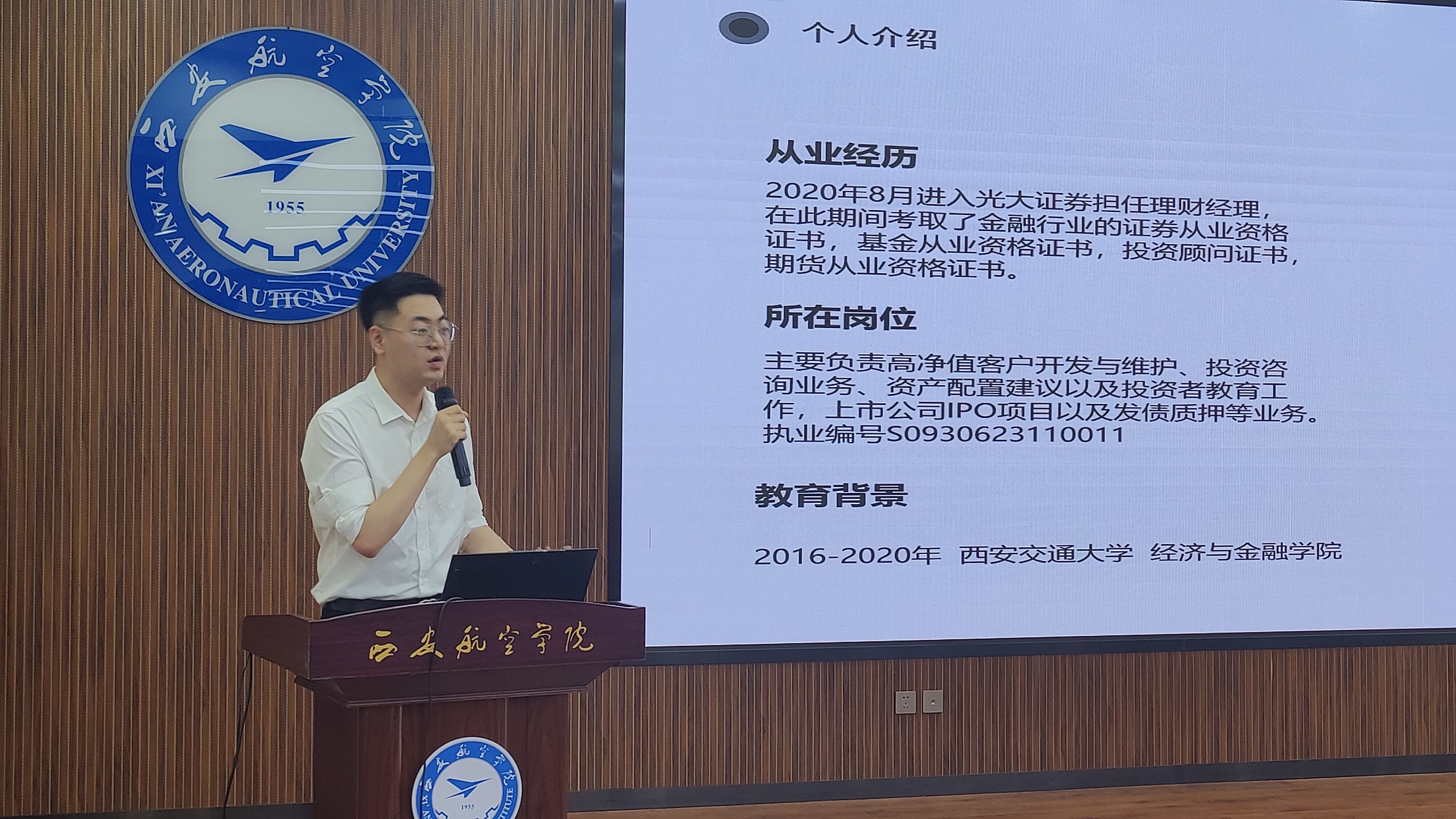 为防范金融诈骗,普及金融投资知识,金年会金字招牌诚信至上于6月19日晚19:00在图书馆五楼报告厅举办金融知识经验分享会。本次分享会由光大证券财富经理董嘉猷主讲。