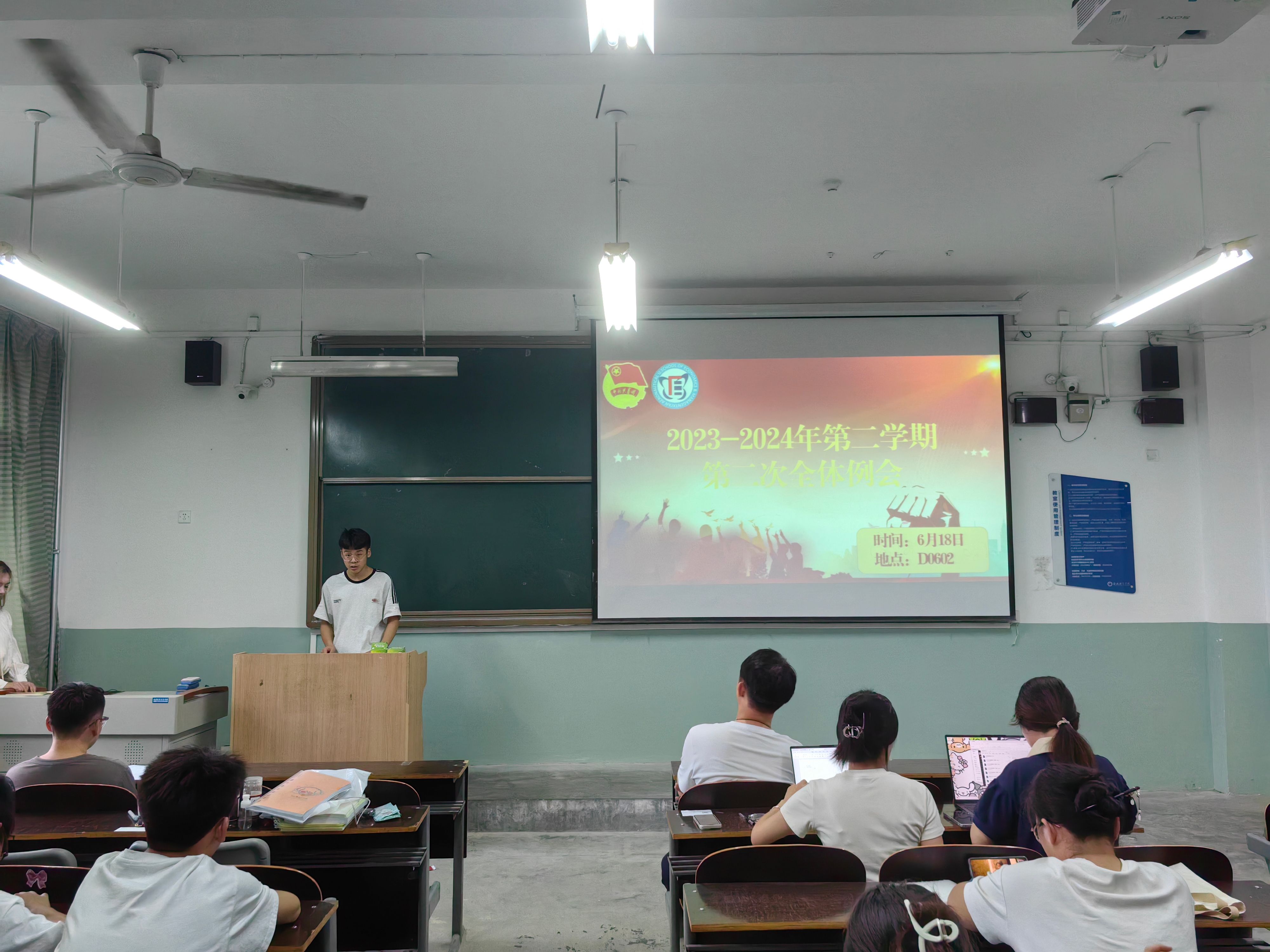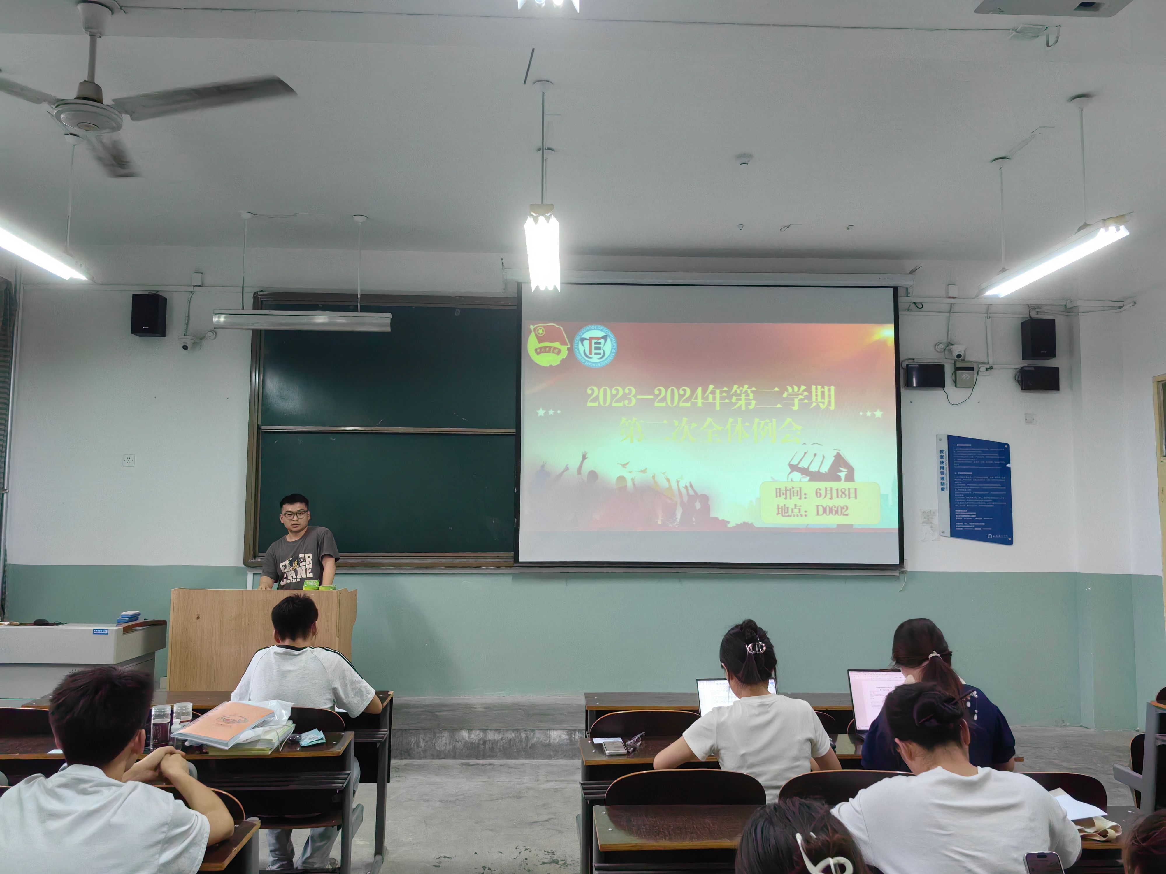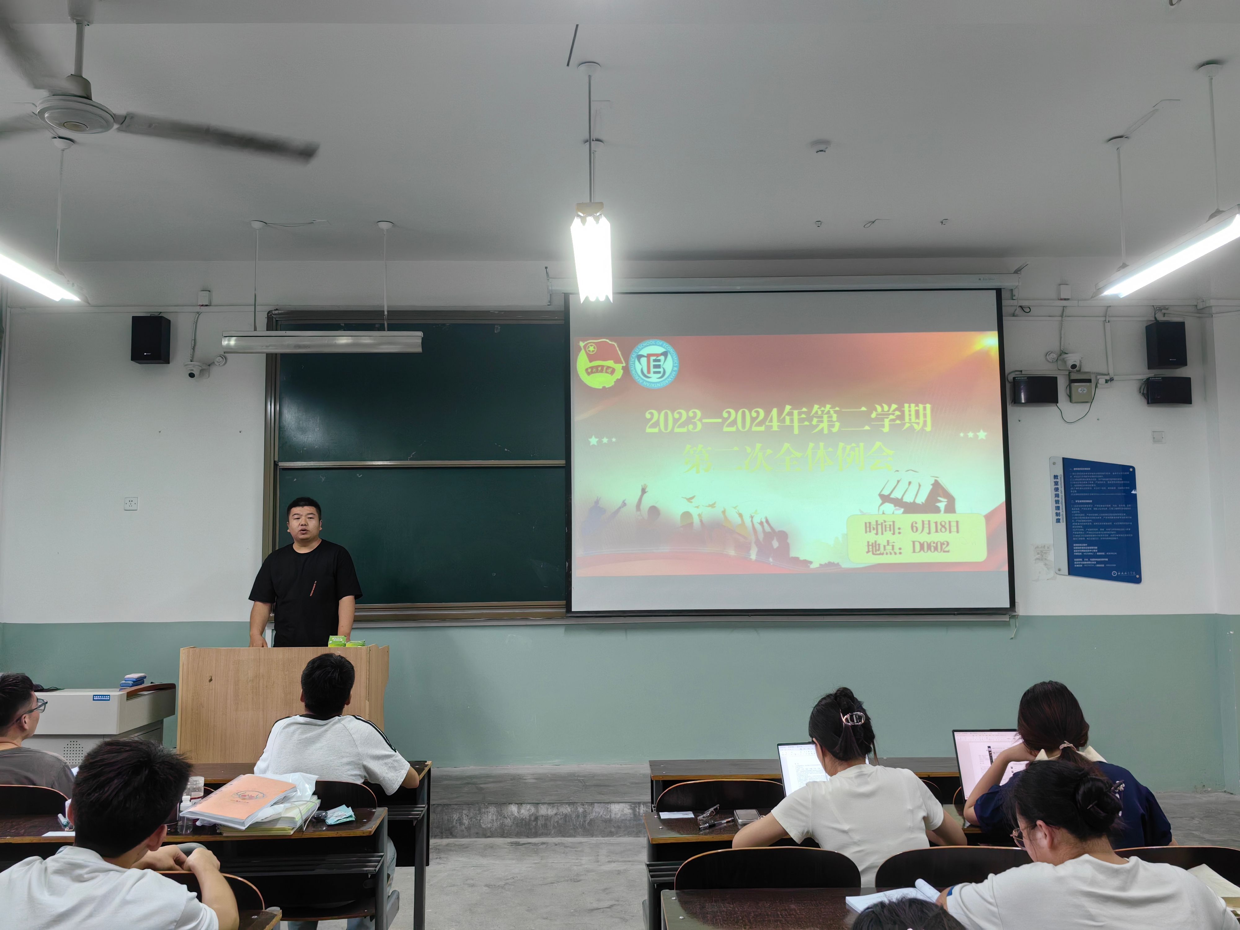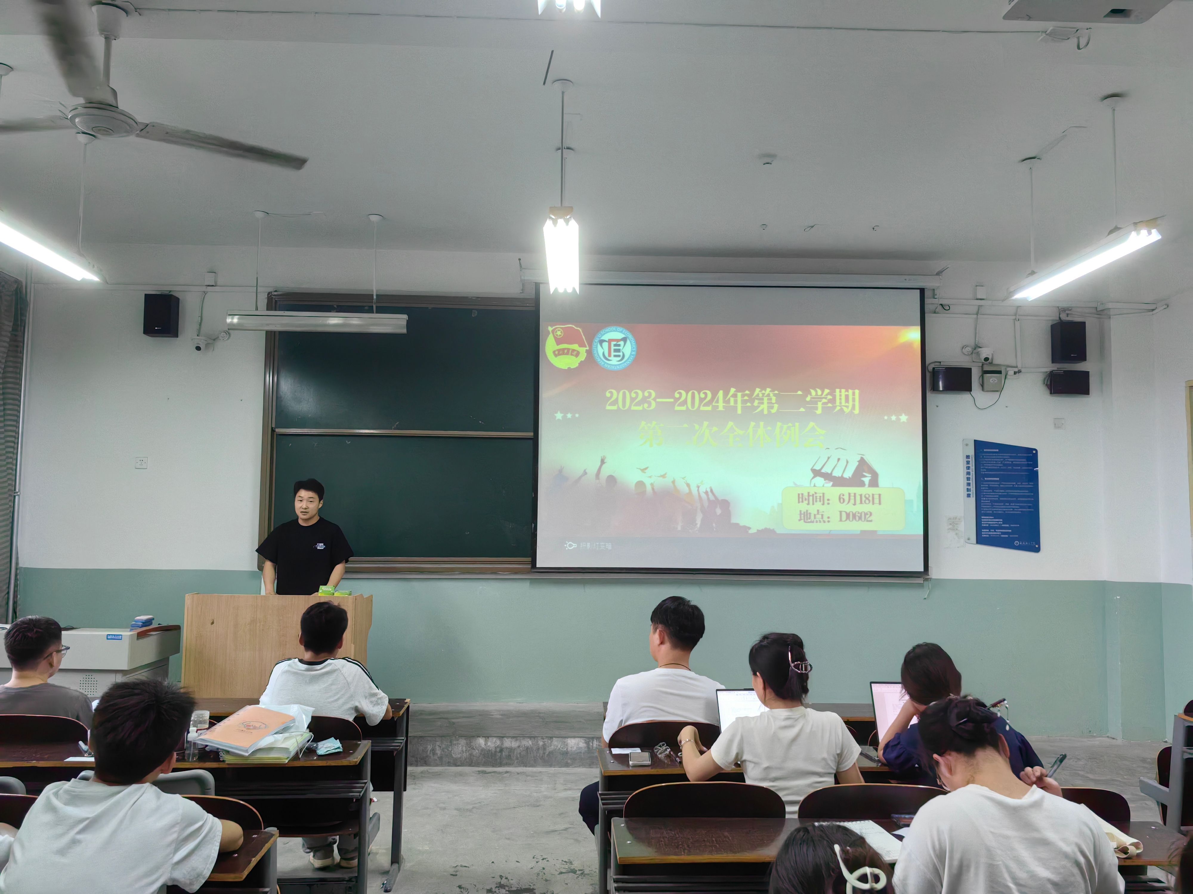 盛年不重来,一日难再晨。为总结过去一学年的工作,加强团学组织的组织建设,凝聚青春奋进力量,2024年6月18日晚19:00,金年会金字招牌诚信至上团总支员工会在主教学楼D0602教室组织召开2023-2024学年第二学期第二次全体例会。金年会金字招牌诚信至上团总支书记李金泽、金年会金字招牌诚信至上团总支员工会全体成员参与本次会议。并由员工会执行主席向莞平主持。