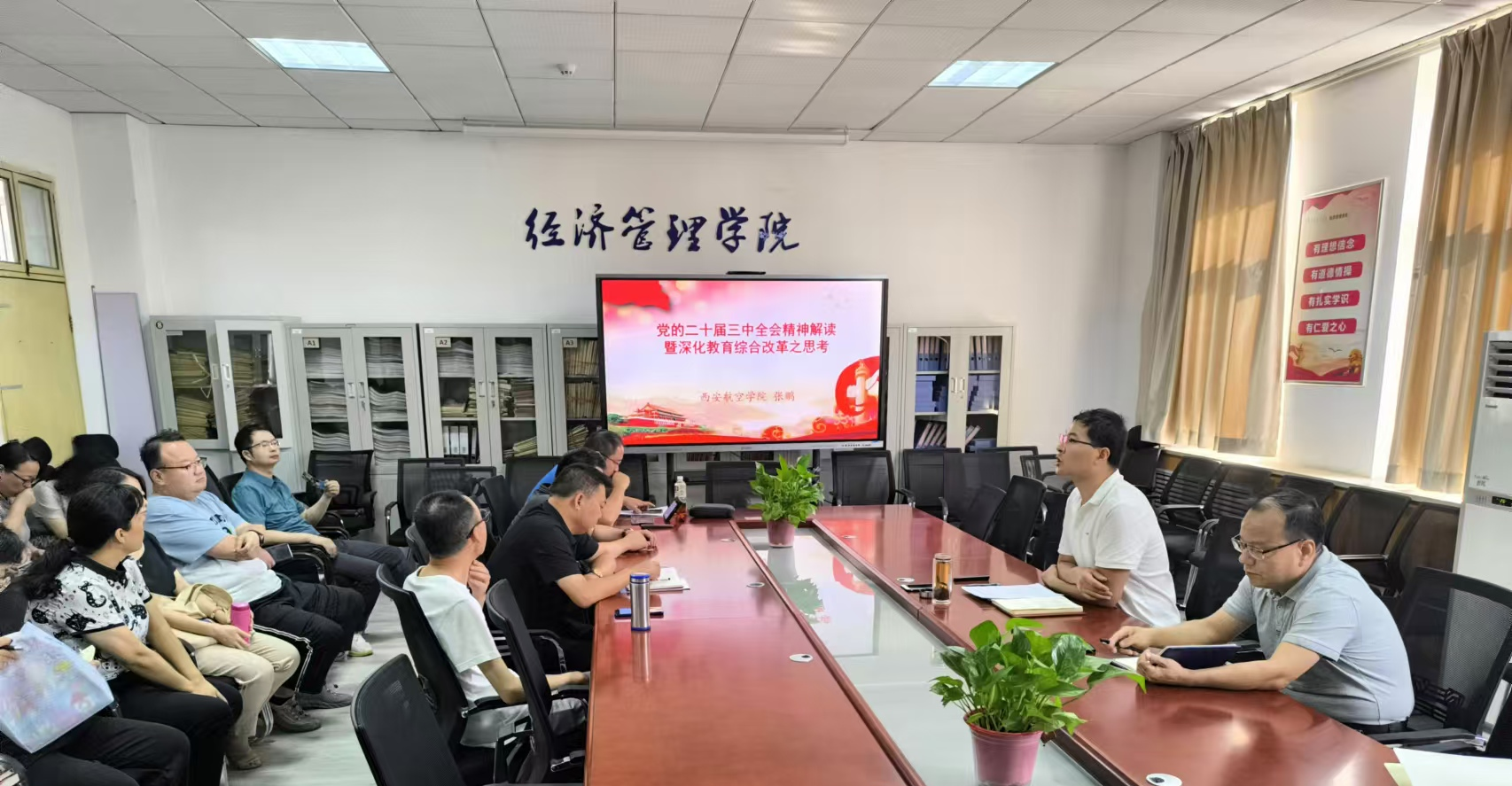 张鹏强调,我们要加强对党的二十届三中全会精神及习近平总书记系列重要讲话精神的学习,胸怀“国之大者”,与祖国和党中央同向同行,牢固树立改革创新发展理念,领会二十届三中全会的重大意义和方法论,推进公司各项工作爬坡过坎,再上新台阶。号召公司全体教师把贯彻落实全会精神转化为教书育人和科学研究的工作动力,争做“四有”好老师。