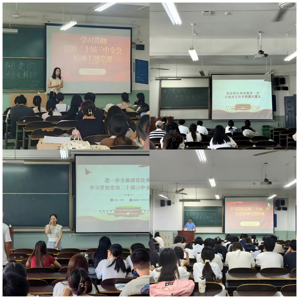 支部书记程媛媛老师介绍了党课的主要内容和学习的时间安排。她表示,深入学习贯彻落实党的二十届三中全会精神,不仅要学深悟透,更重要的是做实,要把党的二十届三中全会精神与自身实际相结合,践行于实际行动中,努力学习锻造本领,热忱服务厚植感恩情怀,要努力做时代的先锋,与新时代同向同行、共同前进,在奋斗中创造精彩人生,为祖国和人民贡献青春和力量。