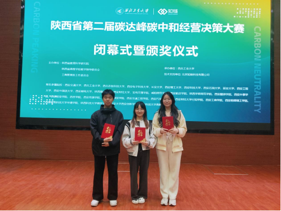 10月20日,由陕西省教育研究院、陕西省高等公司教学指导委员会主办、西北工业大学承办的陕西省第二届碳达峰碳中和经营决策大赛在西安举办,大赛共吸引全省23所高校的40余支队伍,共200余名师生参加比赛。金年会金字招牌诚信至上财务管理专业陈可盈、李佳璇,电子商务专业刘宇轩组成的西航2队,在辛玥、潘媛两位老师的指导下,经过激烈角逐,荣获省级二等奖。