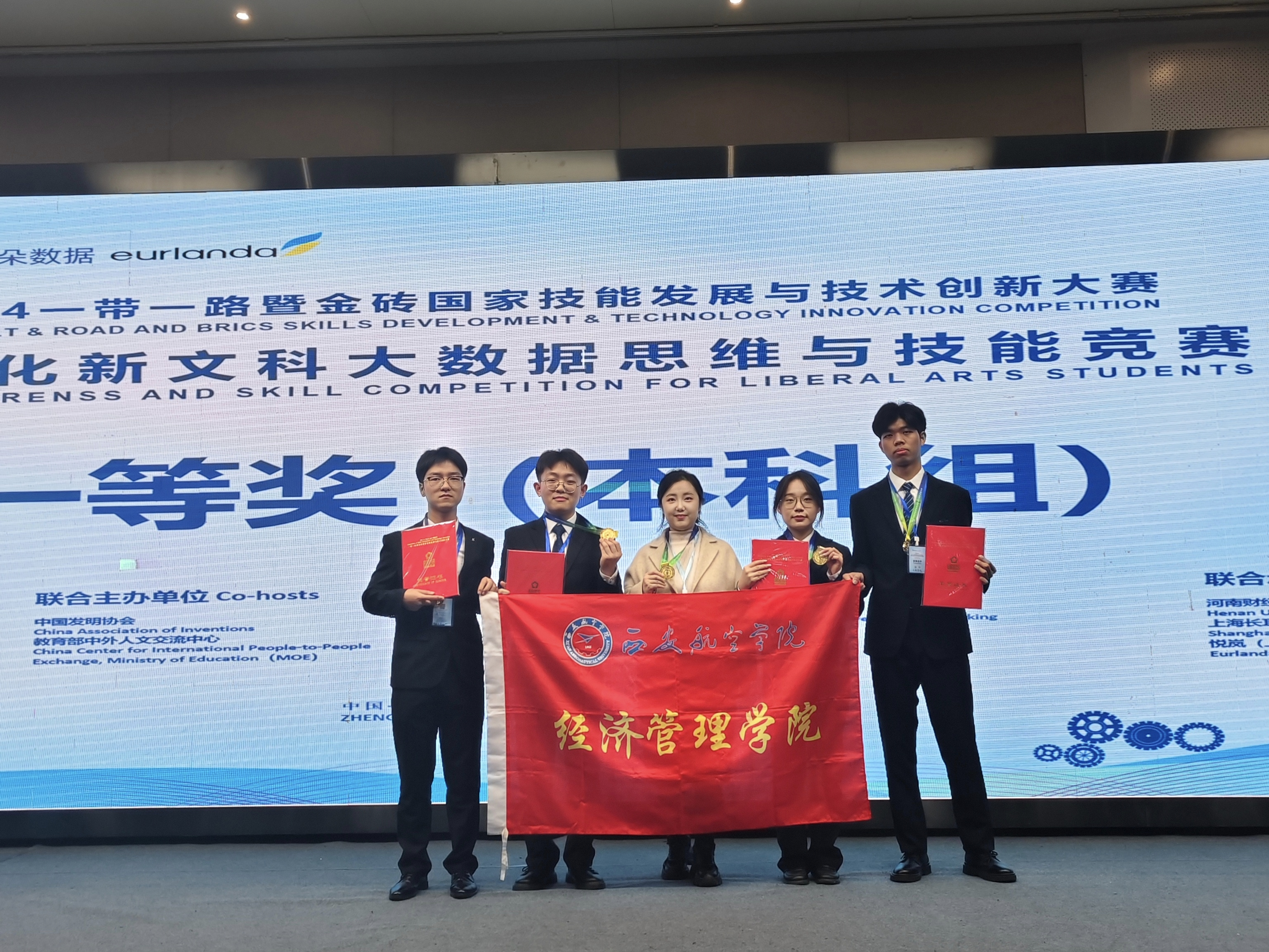 2024年11月17日“2024一带一路暨金砖国家技能发展与技术创新大赛——数字化新文科大数据思维与技能竞赛”全国总决赛在河南财经政法大学举办。金年会金字招牌诚信至上物流管理、财务管理的王文旗、苏欣等7名同学组成的两支赛队经过激烈逐角,最终分别斩获国家级本科组一等奖和三等奖,刘欣萌、王刚获得“优秀指导教师”称号,公司荣获“最佳组织奖”称号。