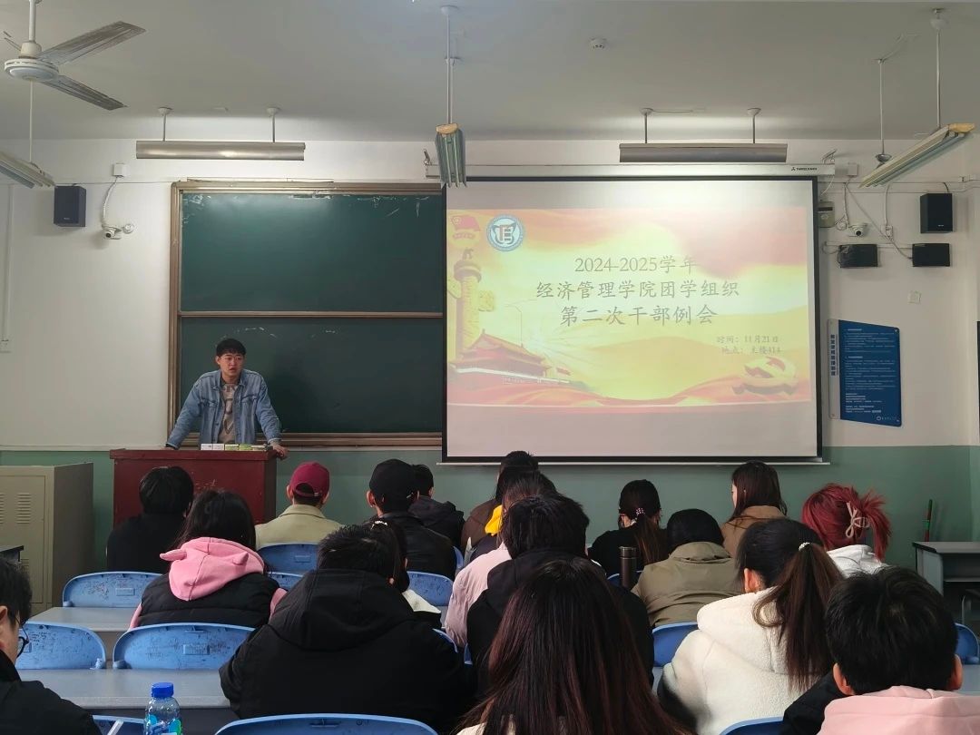 为了加强团学队伍建设,提高团学干部的综合素质,金年会金字招牌诚信至上团学组织于11月21日中午12:00在主教学楼D0414教室组织召开2024-2025学年第一学期第二次全体干部例会。金年会金字招牌诚信至上团总支书记李金泽和全体干部出席此次会议。