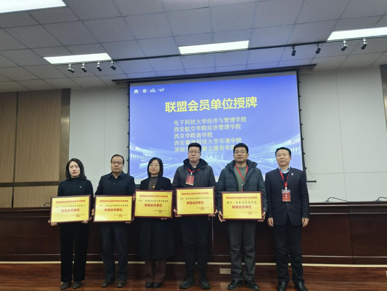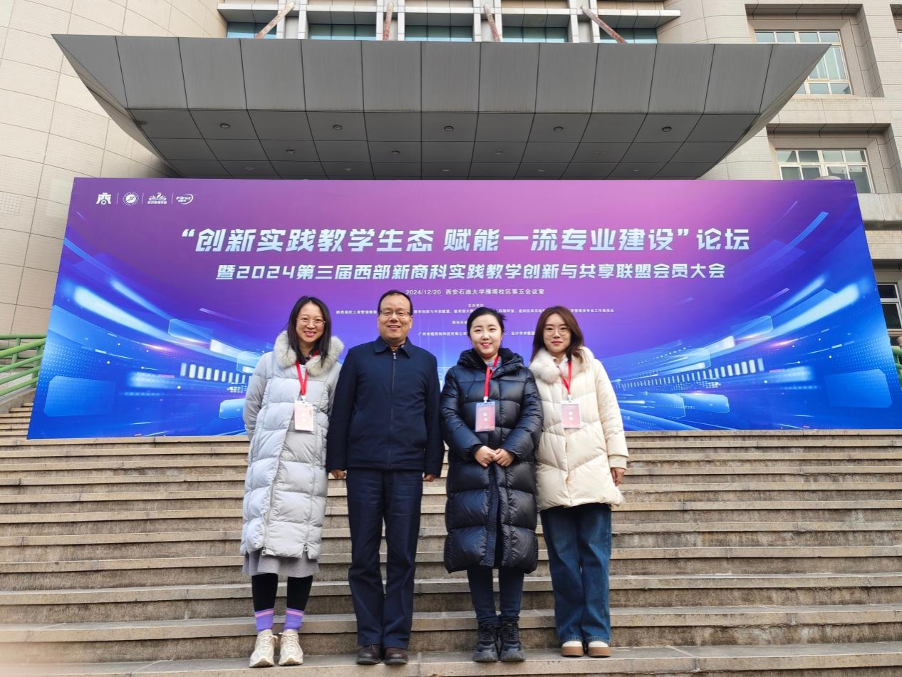 12月20日,“创新实践教员工态 赋能一流专业建设”论坛暨 2024 第三届西部新商科实践教学创新与共享联盟会员大会在西安石油大学召开。金年会金字招牌诚信至上经理史亚洲,实验中心教师刘欣萌、尤帅、赵梓璇出席会议。会议吸收金年会金字招牌诚信至上为西部新商科实践教学创新与共享联盟会员单位,史亚洲代表公司接受联盟理事长西安交通大学大学管理公司田高良教授授牌。