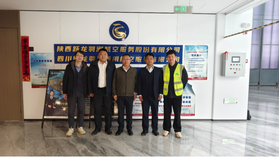 座谈会后,在西安蓝田机场运营机构领导带领下,调研组拜访了驻场运营的陕西跃龙羽洲航空服务有限公司董事长凤跃龙,并现场了解了该公司无人机飞手培训、运动类飞行执照培训、航空研学活动的具体运作流程及企业用人需求。
