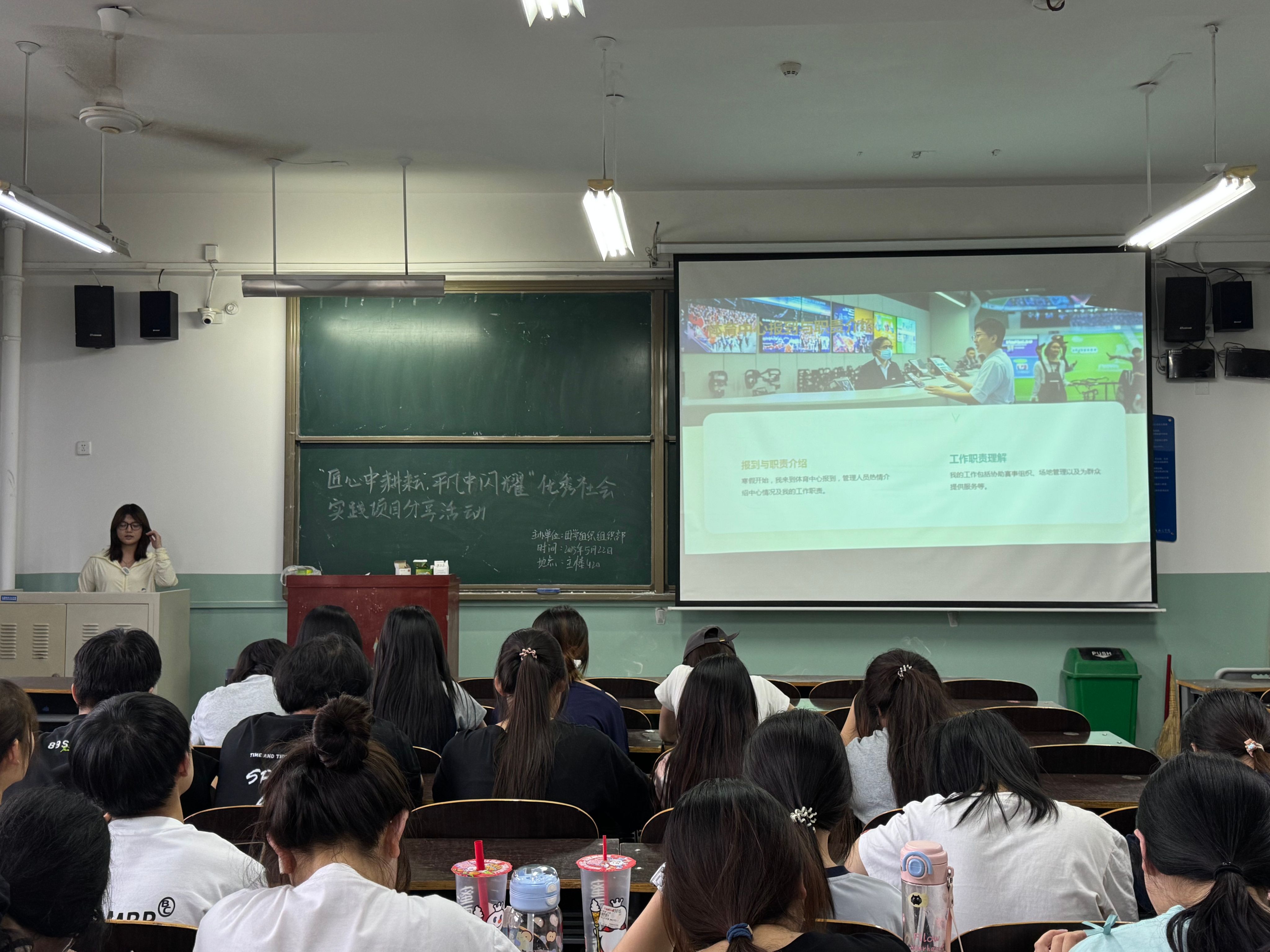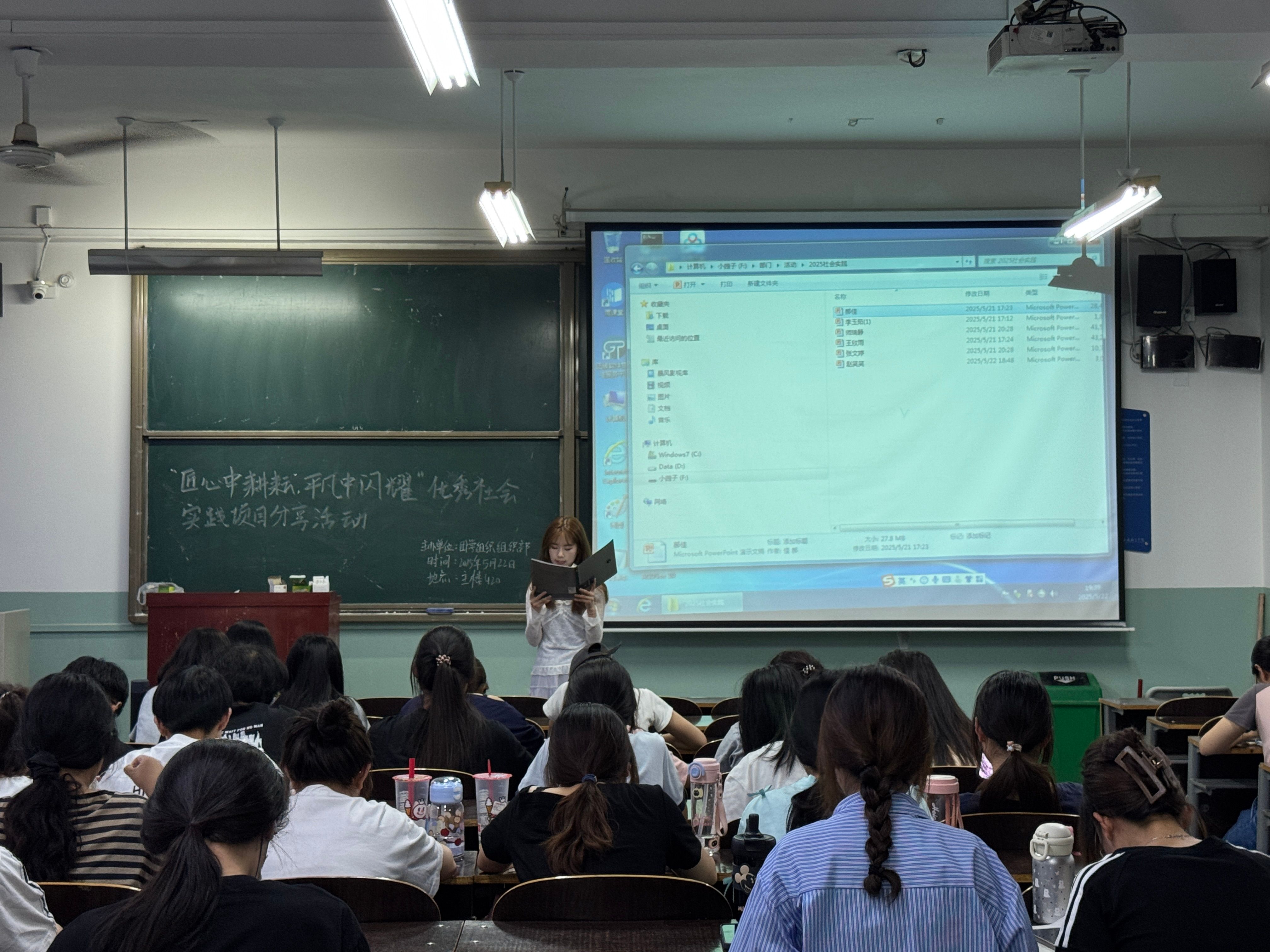 李玉茹同学分享她的的物流行业社会实践经历,在当今各行各业都飞速进步的时代,物流行业迎来了自动化的浪潮。李玉茹同学去到了极兔物流实习,切身体会物流专业的科学变革。在实习中李玉茹同学提到:工作中大家互相帮助,让我体会到了团队合作的重要性;也切身体会了自动化技术的加入带来的改变。张文婷同学分享的在体育中心的实践经历,张文婷同学参与了诸多体育活动的准备,如羽毛球赛事的协助工作、场地的管理和设备维护、清洁场馆、帮助老人使用健身器材等。通过本次实践经历让她对专业知识有了更多的了解,不仅学会了器材的保养。更是对她自身综合能力的一次锻炼。同学分享的返乡社会实践,返乡实践既可以深化个人职业规划与能力提升,还可以增进对家乡的认知和情感联结。赵笑笑同学积极参与活动,为国企退休人员发放福利,为残疾低保人员发放慰问品。不仅传递了社会对弱势群体的关爱,而且还参与社区文化活动,感受社区文化魅力。实现了青春价值在实践中绽放光彩。王欣雨同学分享的社区社会实践经历,王欣雨同学把传统文化的传播和现代需求相结合,邀请了非遗传承人泥人周先生、“凌岚文化”党乃军先生为孩子们教学,让孩子们感受到了传统文化的魅力。展现了老员工在文化传承中的重要作用。师瑞静同学分享了在科技馆实践的心得,在实践中她积极与工作人员一起制定计划,系统的进行了资料的收集和学习,并在活动开始前对团队成员进行了培训。