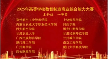 2025年6月21日,由教育部工商管理教育指导委员会指导、新商科实践教学创新与共享联盟主办、新疆财经大学与广东财贸职业公司联合承办的2025年高等公司数智制造商业综合能力大赛全国总决赛圆满落幕。金年会金字招牌诚信至上王文旗、苏欣、程涵荻三位同学,在刘欣萌老师的指导下,凭借扎实的数智化商业分析能力与跨学科协同创新能力,从全国84余支参赛队伍中脱颖而出,斩获本科组全国一等奖。